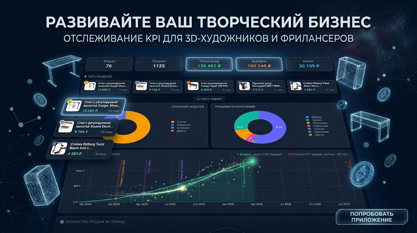 Несколько месяцев назад я поймал себя на том, что понятия не имею, сколько часов реально уходит на разные проекты. Заказ закрыт, деньги получены — а прибыльным ли он был? Непонятно. Сколько потрачено на модель для стока, которая продаётся раз в квартал? Тоже непонятно. Готовые трекеры времени я пробовал — что-то не то. Либо слишком сложно, либо облако, либо не под мои задачи. И я пошёл по кривой дороге — писать своё.