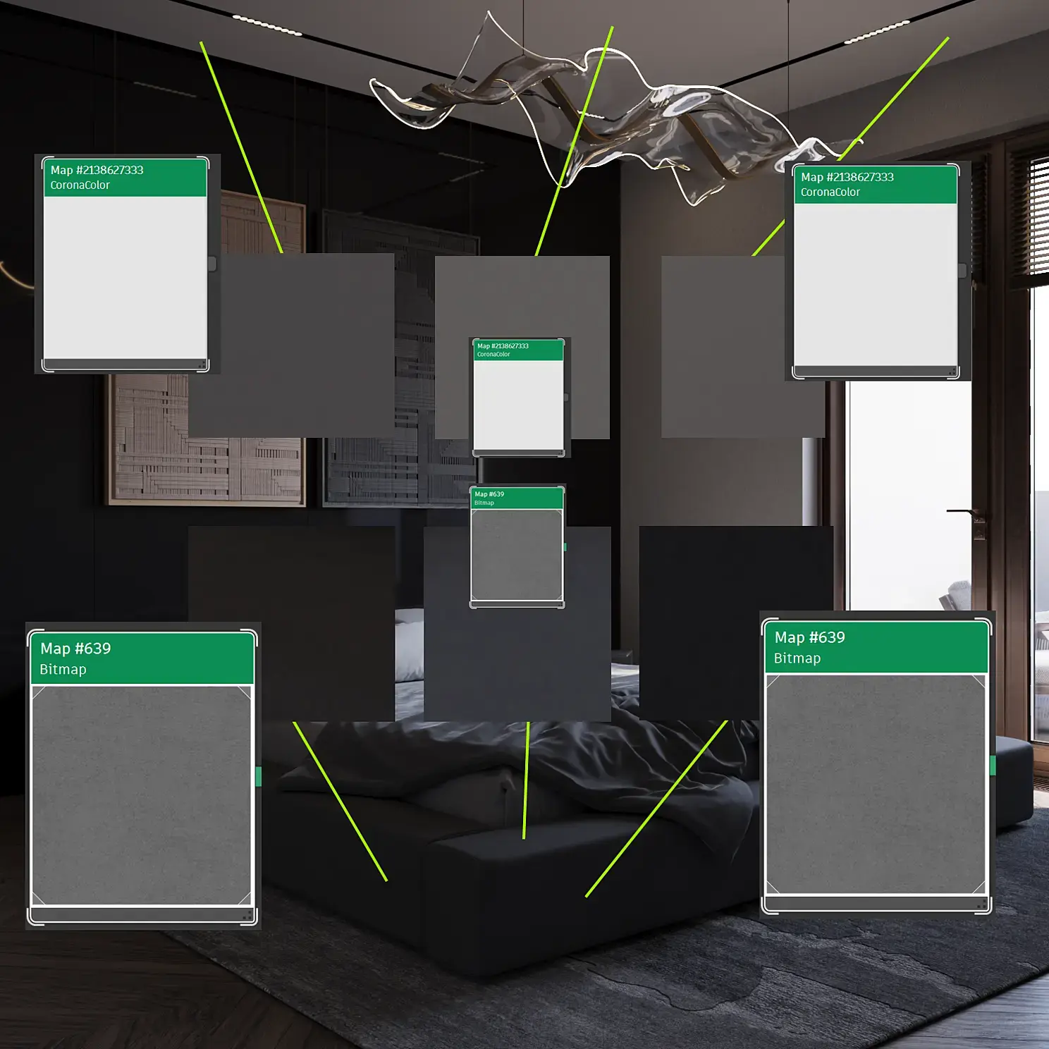 Визуализаторы с достаточным опытом редко в повседневной работе так разбивают компоненты на части, как мы будет делать тут. Но такая деталировка нужна, чтобы наглядно показать влияние каждого компонента на итог, тем, кто еще не видит этого в общей картине. Да и тем, кто уже видит детали в общем итоге, уверен, будет полезно увидеть их по частям.