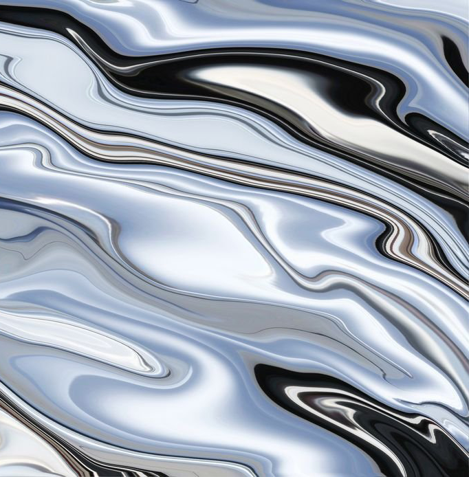 Для абсолютно рефлективного примера подойдет хром, зеркало, поверхность расплава. Это грубый пример, т.к. повторюсь, абсолютно крайних примеров в реальной жизни нет.