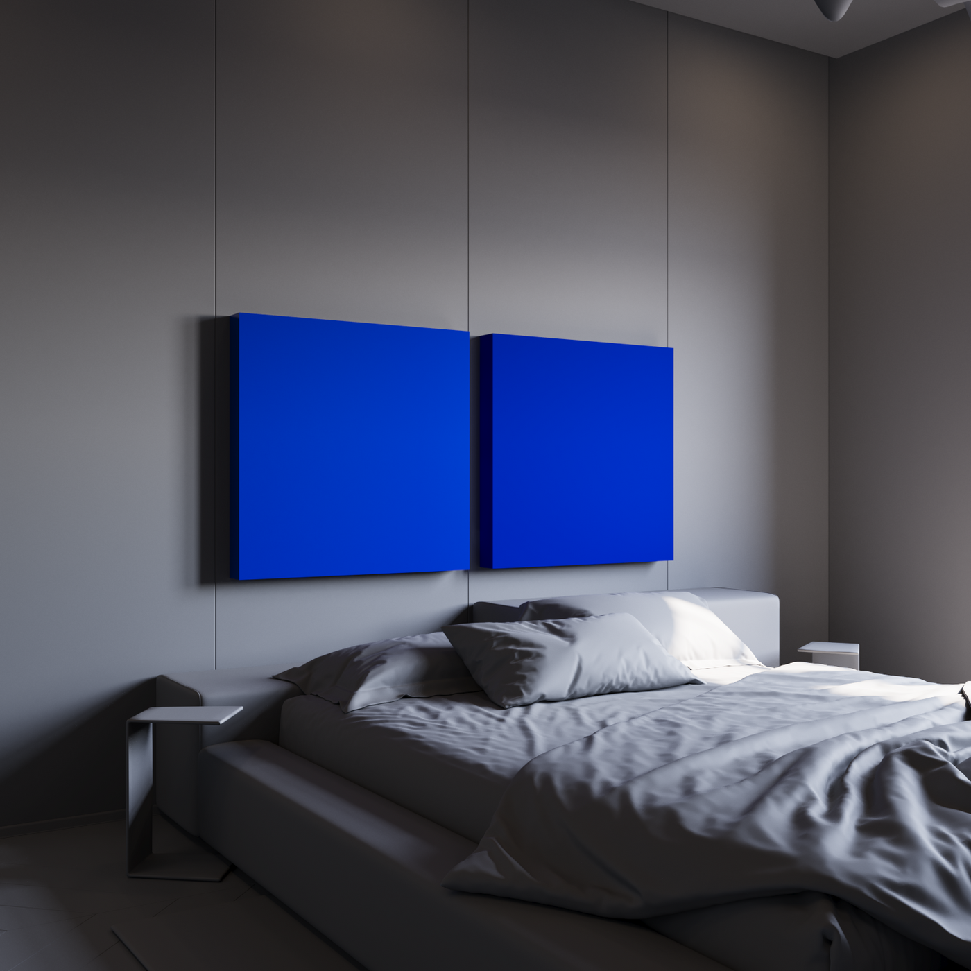 Лишь небольшой градиент по "лицу" постера, так как угол к поверхности левого и правого края сильно отличаются. А уж подушки ли будут в этом рефлективном отражении или еще что — не важно.