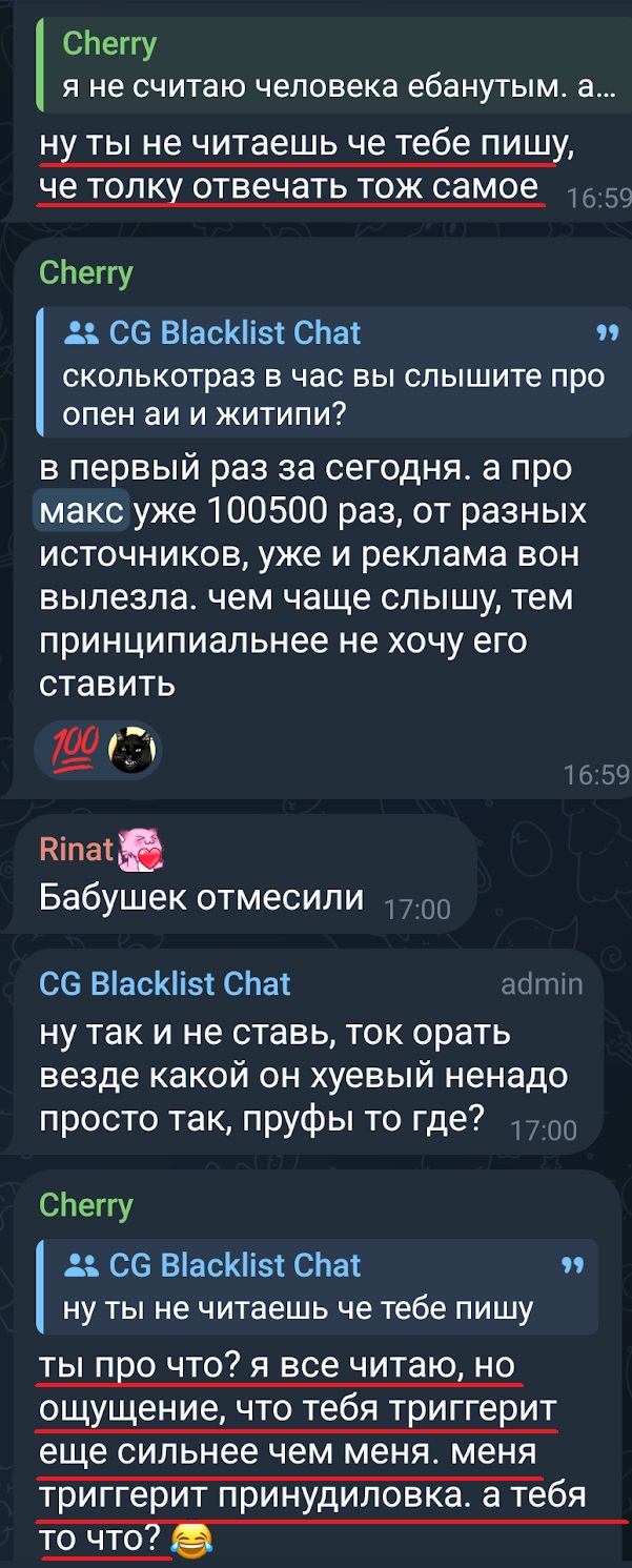 На этом моменте я, наконец, прочитал все предыдущие сообщения, и решил ввалиться в обсуждение тяжёлой ситуации. Админ снова выкинул свой любимый козырь - "вы все ничего не понимаете и читать не умеете".