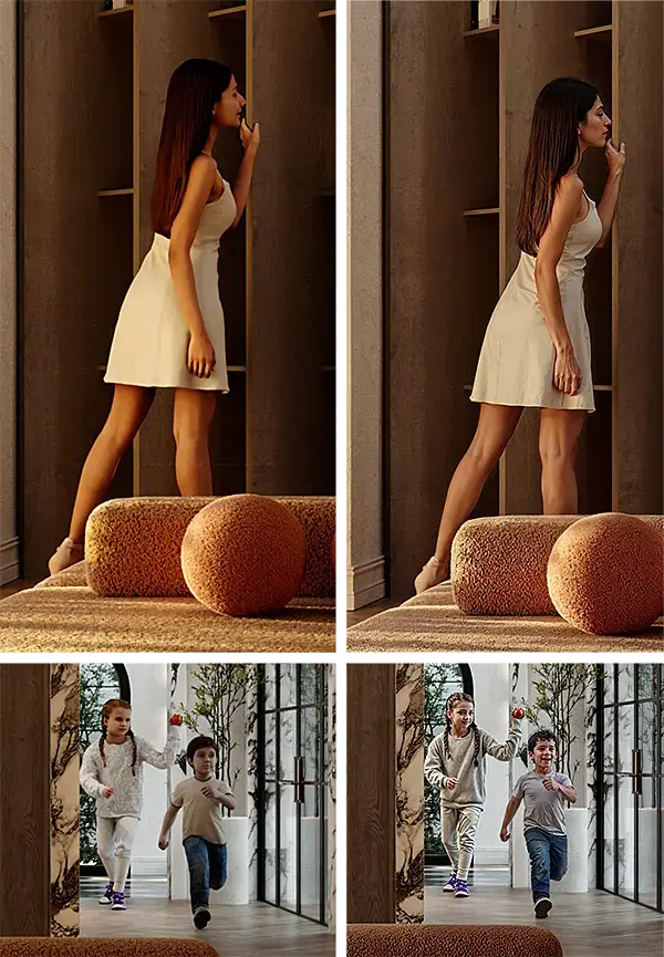 Добавляем вариант с персонажами в кадре. По задумке мама играет с детьми в прятки/догонялки.