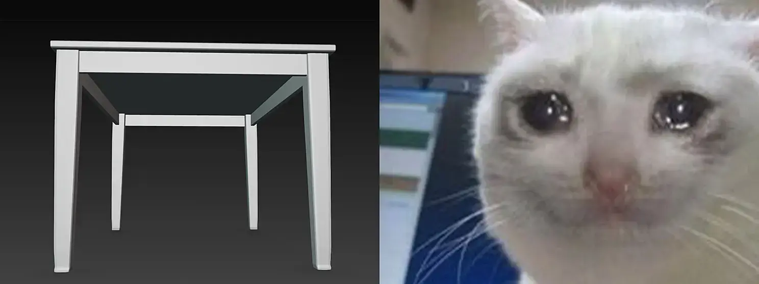 На входе были высококачественные 4K-фотографии самого примитивного квадратного стола, но ИИ не справился.