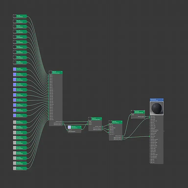 Итоговая структура шейдера рулонной битумной кровли после 9 шагов. Выглядит просто, но за этим "просто" стоят годы опыта и работы: