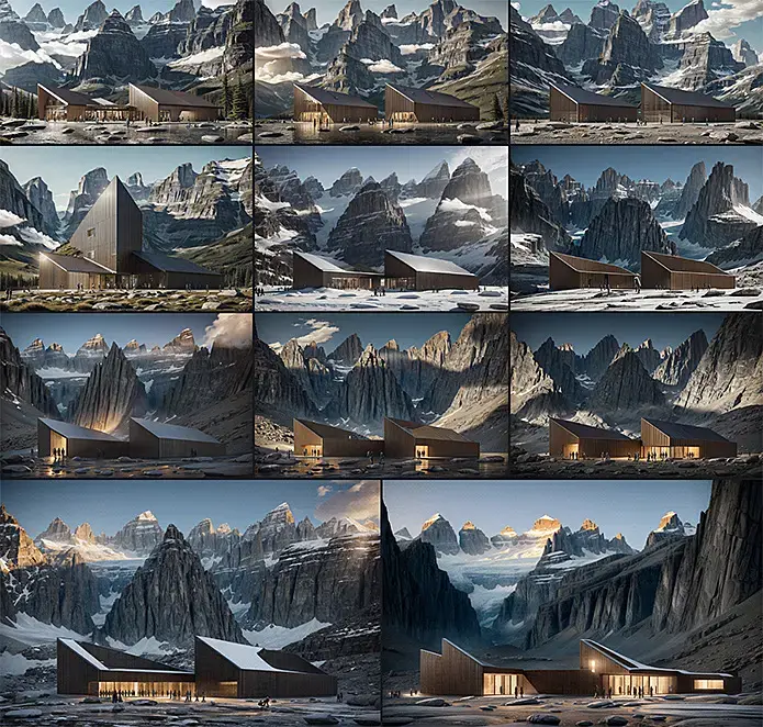 Конечно же с идеи и основы, на которую будет ориентироваться ИИ. Это может быть очень схематичный эскиз от руки, или скриншот 3д вьюпорта архитектурной программы, или детальным рендер в короне. Уровень участия нейросети можно контролировать.
