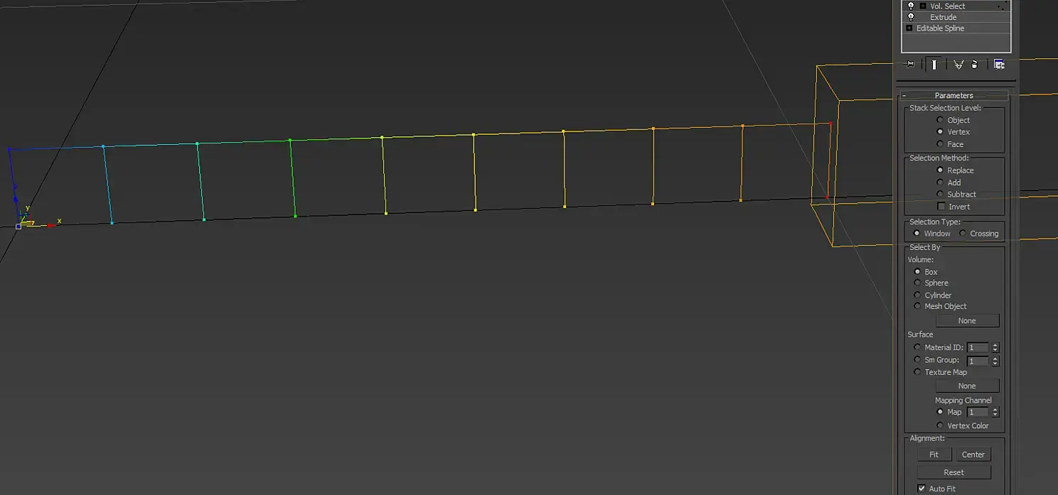 Круто, мы сделали парметрическое линейное движение. Далеко не отходя, всего лишь переключив режим вкладки Motion с parametrs на trajectories, мы в один клик рисуем линию длинной 10 (сантиметров, метров? в общем смотрите свои дюймы в System Units) по одной оси, еще бонусом у неё будет 10 равноудаленных вершин. Ура! Мы нарисовали линию.