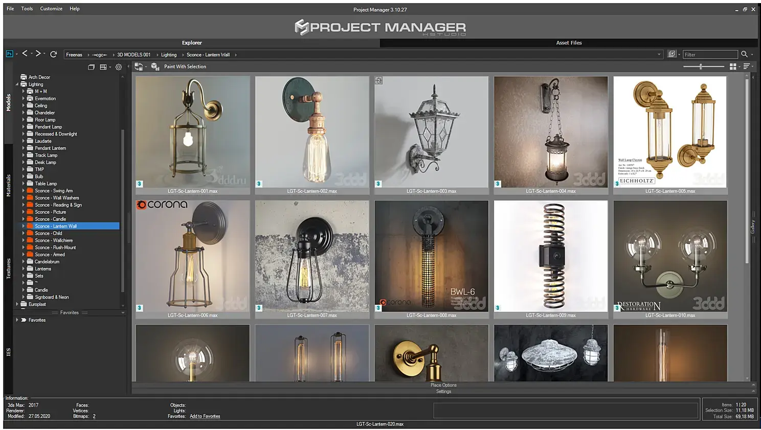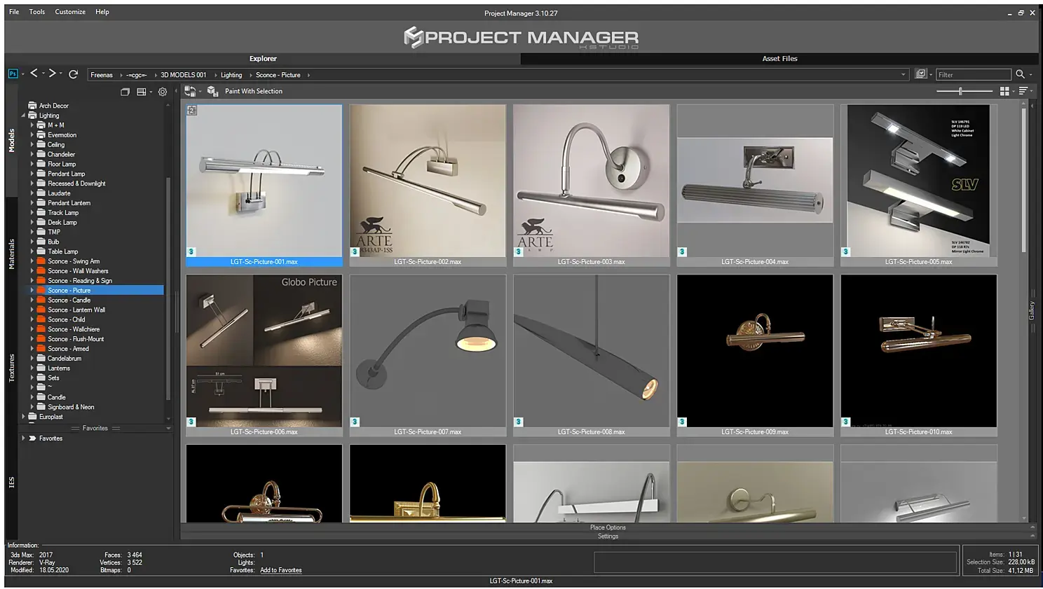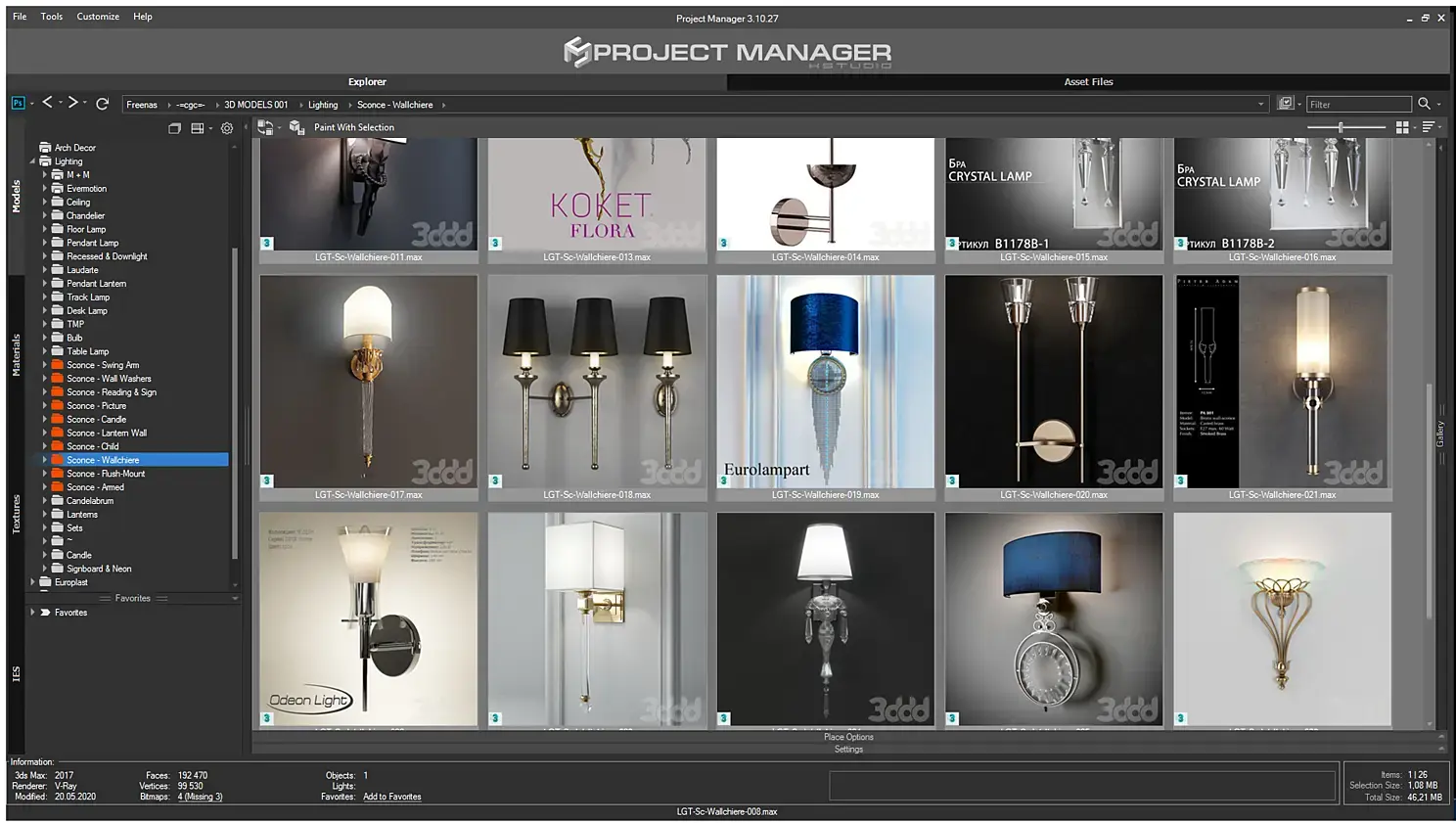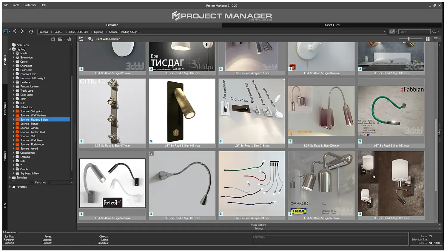 После того как вы разберете все бра по папкам, то "расшарить" их в Project Manager - проблема "двух кликов". Далее, чтобы оптимизировать поиск в Project Manager , нужно использовать теги, по которым можно дополнительно разделить объекты, например, по стилю. Вот список тегов, которые я использую в своей практике: