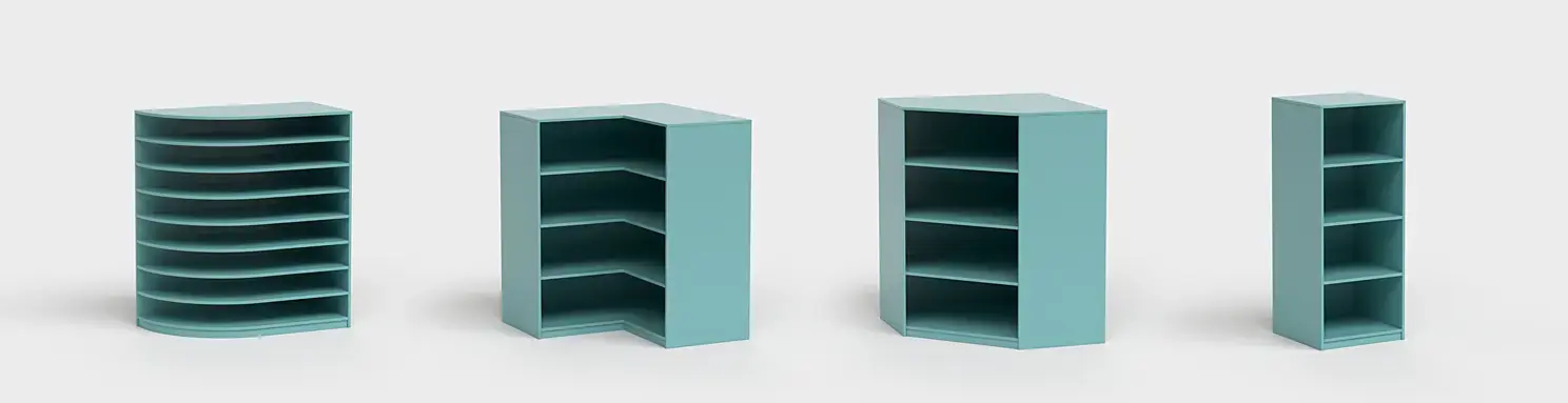 Первое, что хочется упомянуть, это возможность создания угловых и торцевых модулей, со всеми необходимыми элементами (дверьми, полками).