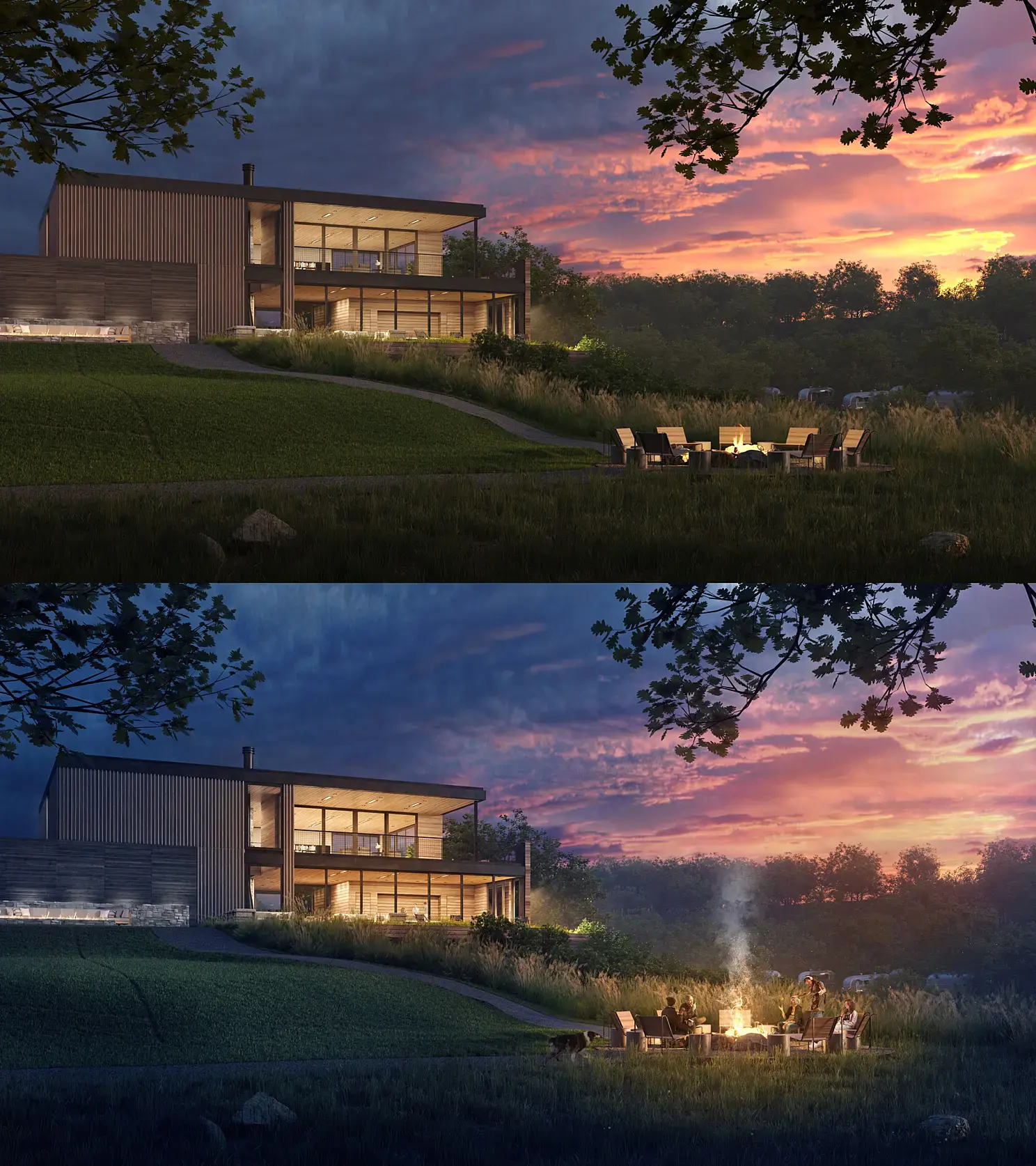 Остальные рендеры подверглись всего лишь небольшой цветокоррекции и вписыванию людей. Поэтому не буду подробно останавливаться на них, и просто покажу результаты до и после.