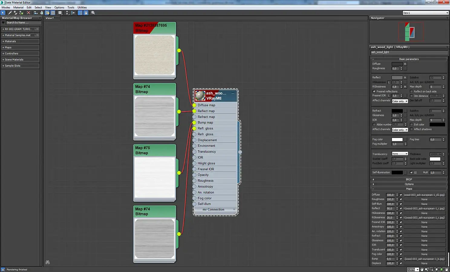 Материал плитки на кухне, на полу. Для разнообразия плитки использовалось 60 текстур разного оттенка. Для их случайного распределения отлично подходит карта MultiTexture. Чтобы было лучше видно текстуры, я буду показывать материалы плитки и паркета с использованием одной текстуры, без MultiTexture.