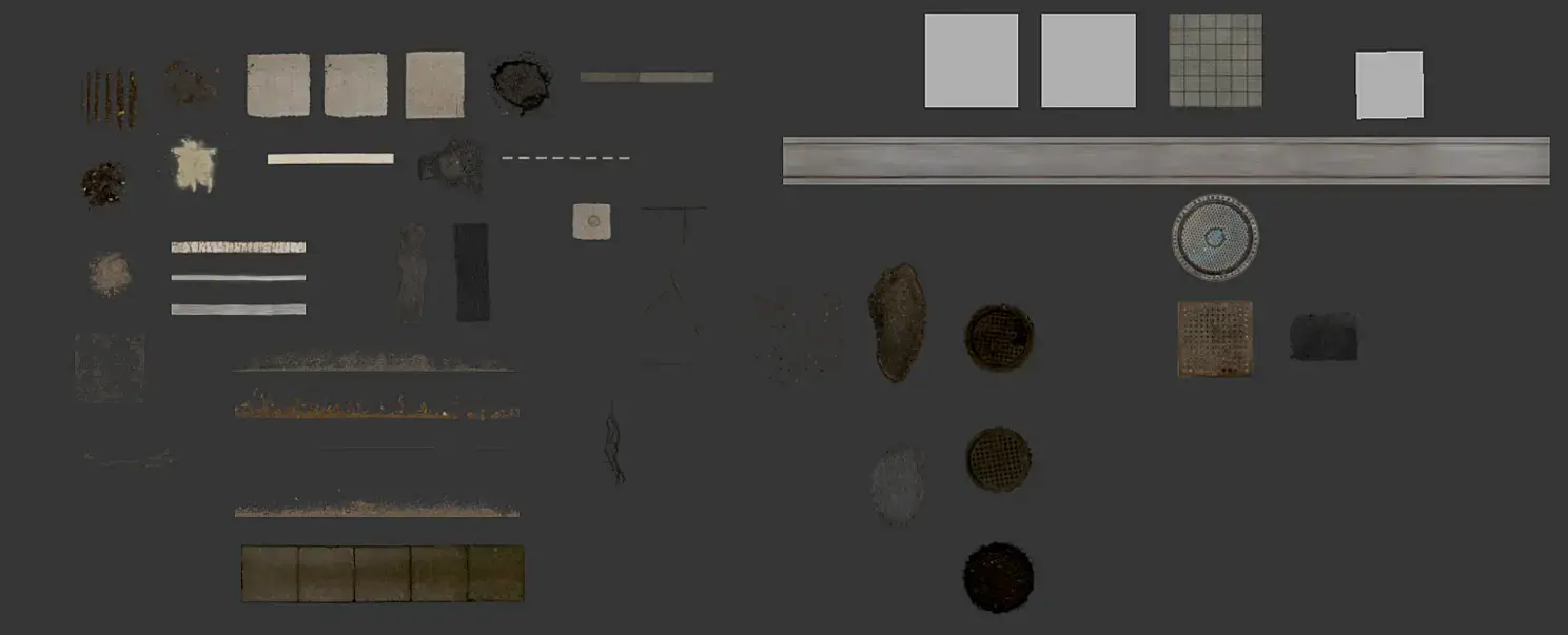 Материал фасада — это цельный шейдер. Он состоит из материала металла и ржавчины. Ржавчина состоит из двух базовых текстур диффузного компонента и различных масок (нет набора pbr текстур).