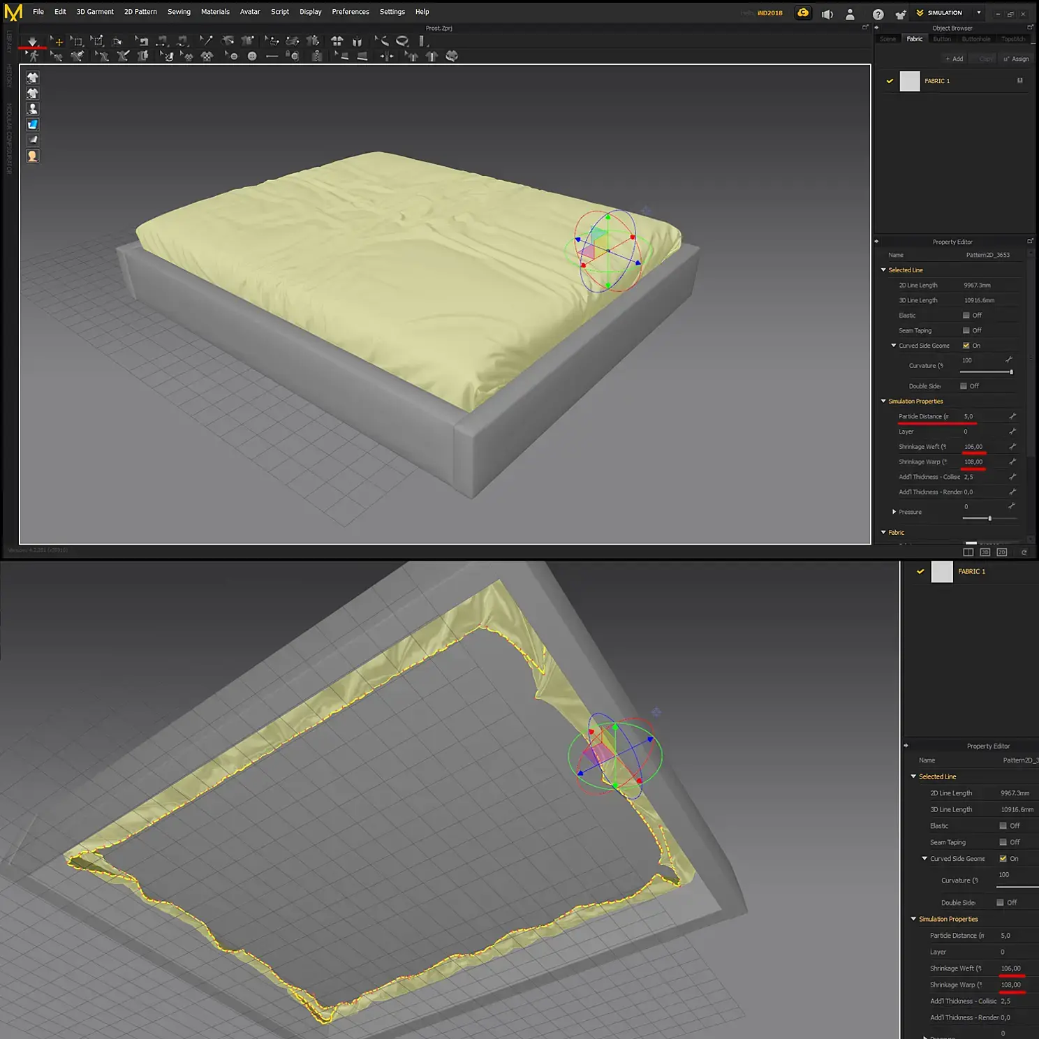 Подушки, тут вопрос в количестве, если много, можно в два захода, сделал одни, закинул как аватар, делаешь другие. Сшиваем, симулируем, надуваем, и каждую по отдельности просчитываем с маленьким Particle Distance. "Из тонкостей" скажу, заднюю часть подушки нужно надувать сильнее, управлять ею будет легче.