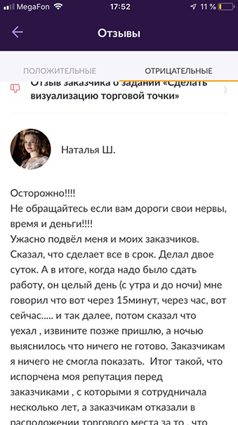 Деньги я отправила, работаем не впервые, вроде не подводил. И вот тут началось веселье. Начиная с 14 и вплоть до 18 он мне морочил голову, то картинки готовятся, то винда полетела, то вот-вот и снова сутки тишины. Пока мы ждали картинки, я не знаю почему, но решила посмотреть что там происходит у него на YouDo. И вот тут, меня ждал настоящий сюрприз.