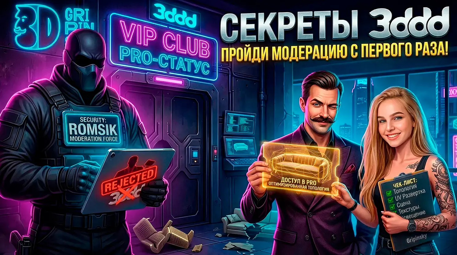 Привет, это команда 3ddd. 30 марта мы проводим вебинар вместе с академией Грипинского, будем говорить про модерацию моделей. Эта статья для тех, кто хочет на него прийти.