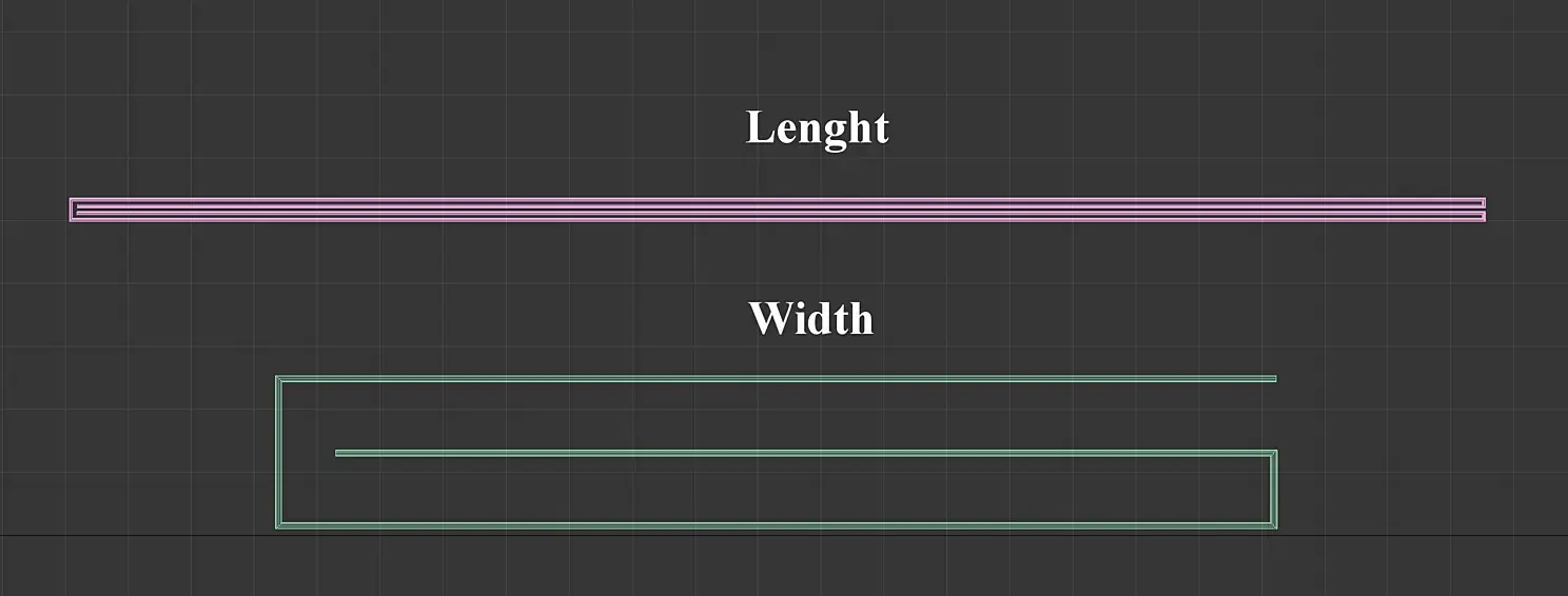 Начинаем работу в 3d max и как раз самое основное и сложное нас ждет именно сейчас. Нарисуем два профиля инструментом линия и дадим им соответствующие имена Width (сечение по ширине) и Length (сечение по длине). При рисовании сплайнов для большей точности и удобства можно задать толщину в Rendering - Enable In Viewport. Для Length по толщине полотна полотенца, для Width - исходя из полученной толщины Length.