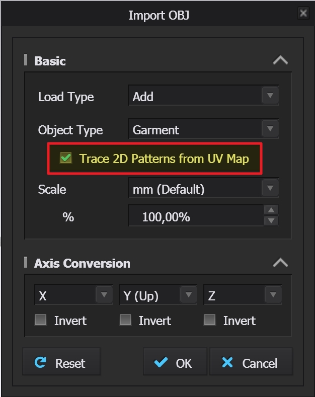 В появившемся окошке поставим галочку Trace 2D Patterns from UV Map.
