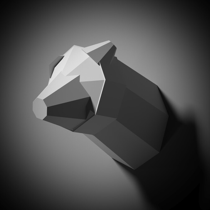 Схематичное изображение объекта (головы, туловища и т.п.), сознательно упрощённое до рубленных плоскостей, называется обрубовкой. Такое упрощение даёт наглядное представление о том, как изменяется форма и под какими углами друг к другу расположены отдельные элементы. Обычно этот метод используется при обучении художников и скульпторов, но мы с вами возьмём его на вооружение для лучшего понимания природы светотени. Ниже вы можете видеть пример обрубовки головы медведя. Для простоты понимания предлагаю вам представить, что у вас в руках есть очень реалистичный гипсовый бюст медвежьей головы, а также есть напильник.