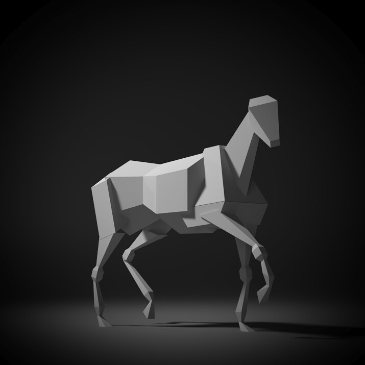 Усложним задачу и рассмотрим органический объект, в роли исследуемого будет выступать лошадь. Здесь нам мысленно необходимо упростить гибкие и обтекаемые органические формы до рубленных примитивов, однако не нужно сразу делать мелкие детали, постараемся обобщить форму. Это упрощение помогает лучше понимать зоны большого света и большой тени, однако светотень на настоящей лошади выглядит куда сложнее и замысловатее, в том числе из-за особенного шерстяного покрова. Но чтобы понять, как быть с этим обстоятельством, нам необходимо обратиться к следующей теме данного конспекта – обрубовке.