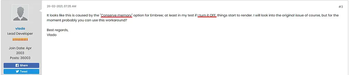 Зы А вижу форесты есть - проверь чтоб у них галдки зависимости от камер не стояли. Это может вызывать бесконечный просчет первого пасса, а виреевский мемори менеджмет и без этого сейчас справляется.
