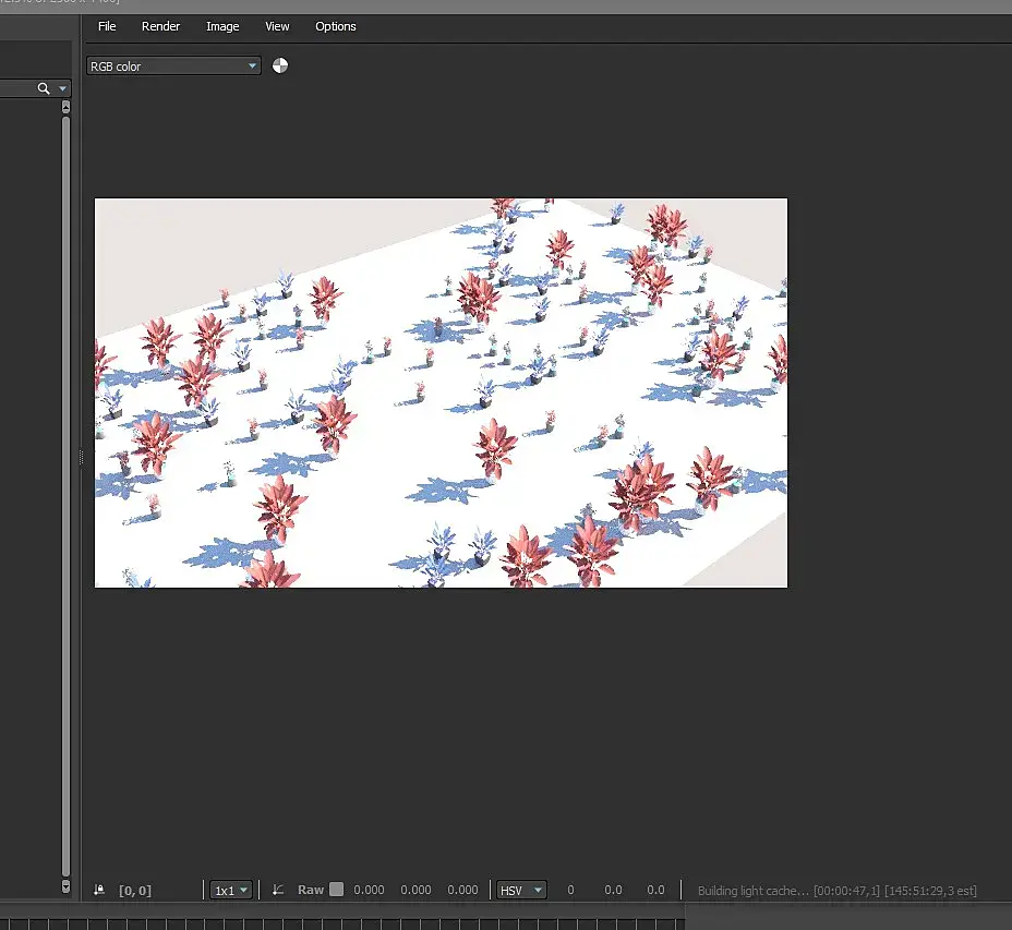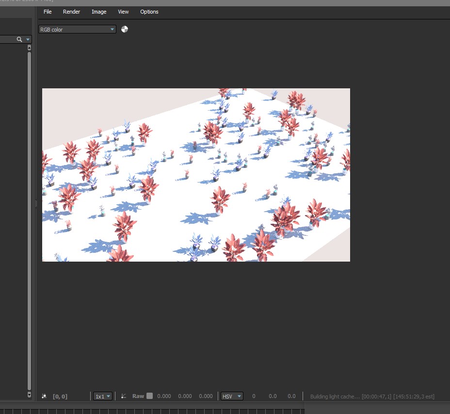 Ааа блин вспомнил. Был косяк у меня как то на котеджном поселке. У фореста был жесткий затуп когда стоит обрезка по сплайну. Он в карту суёт форест колор свой. Вот он ооооочень сильно тупил. У меня предпросчет сцены был минут 20. Не помню правда короной или виреем рендерил