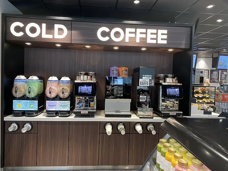 кофемашина, апарат для сока, и несколько холодильников