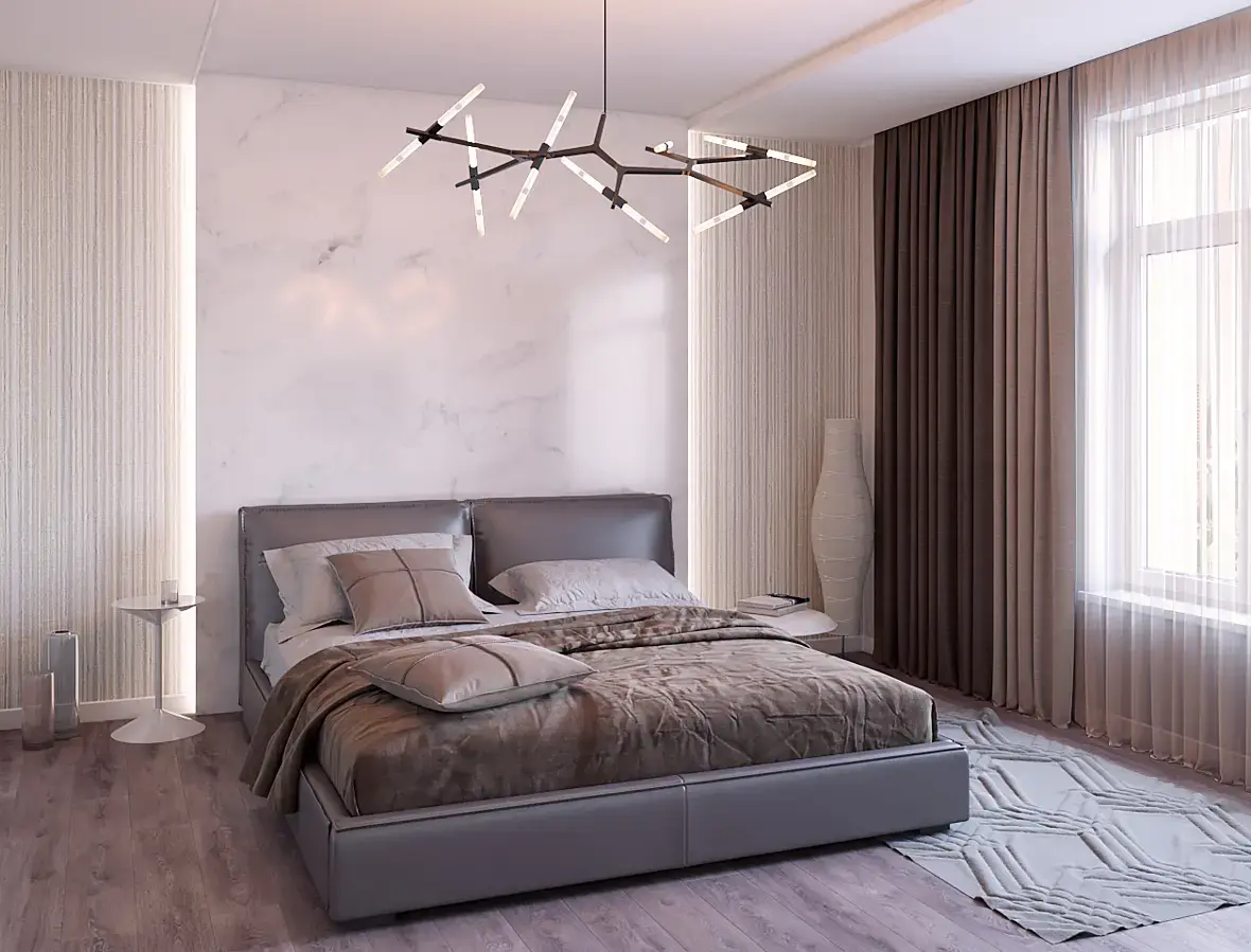 Хорошо. Я бы добавила бликов в гостиной, их совсем нет. У вас либо глянцевый материал, либо на 100% матовый (на кровати есть блики, уже намного живее смотрится). Текстура дерева на торцах тумбы не правильно лежит. Ещё можно маяковую повторяющуюся текстуру ламинатины либо убрать, либо добавить еще текстур для бОльшего разнообразия.