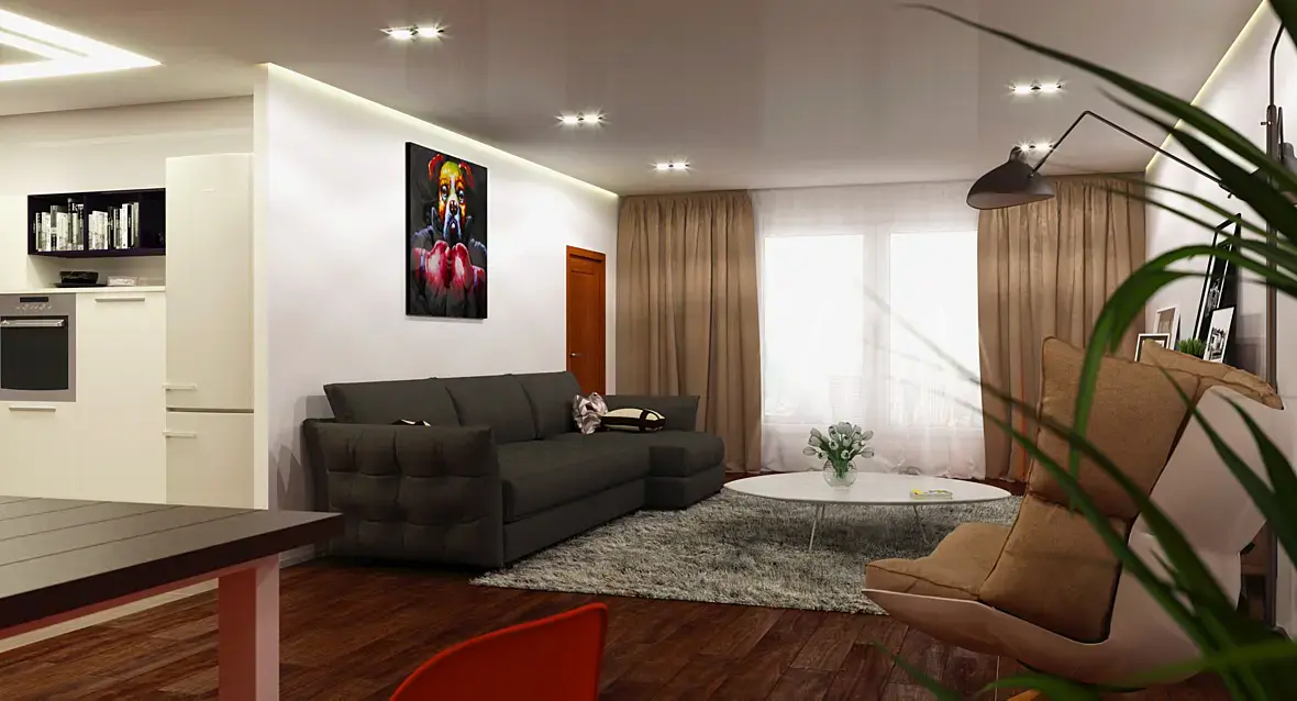 У вас шторы стоят, материалы плохие, кадр неудачный, свет не донастроен, кухня вообще мутная получилась..