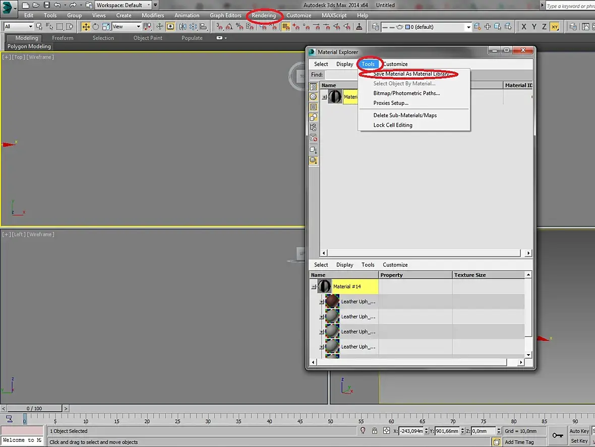 B главном меню rendering\material explorer дальше по скину, обзываешь файл и сохраняешь в *.mat