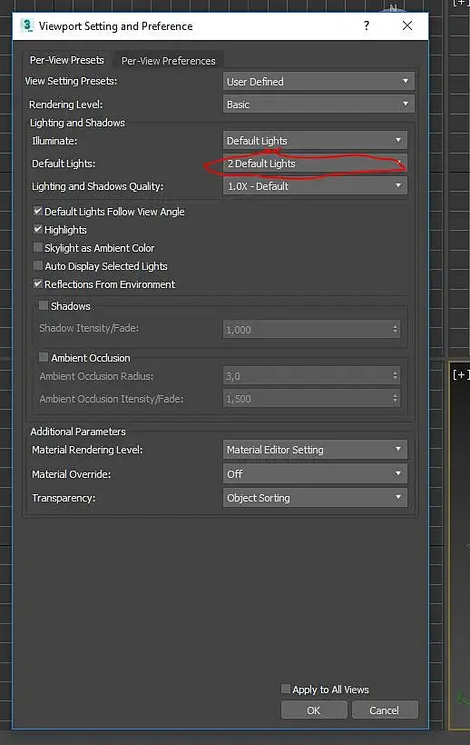 Всем привет. Есть вопрос по 2018 максу. Подскажите как убрать тень во вьюпорте на потолке? В 2015 это проблема легко решалась, а тут что-то не могу найти. Не очень удобно работать с черным потолком.