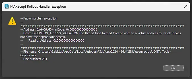 Копитор при вставке сцены тоже ругается на что-то но в итоге вставляет
