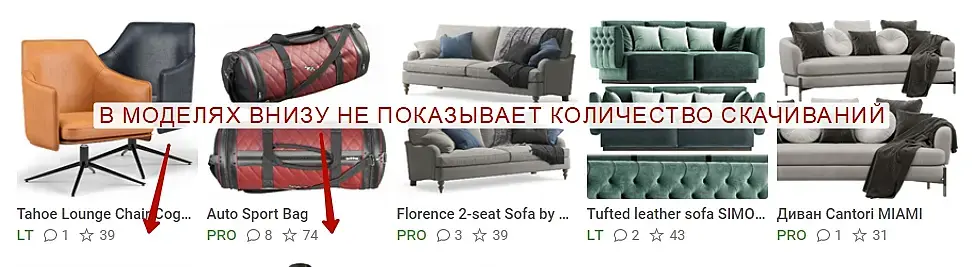 В моделях не показывает, количество скачиваний!