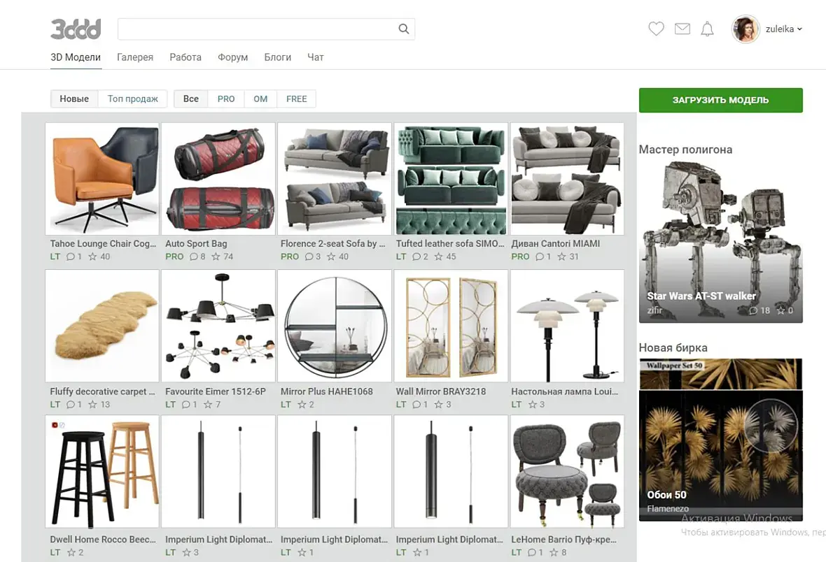 Таки он появляется, если зайти к пользователю на страницу и просмотреть его модели