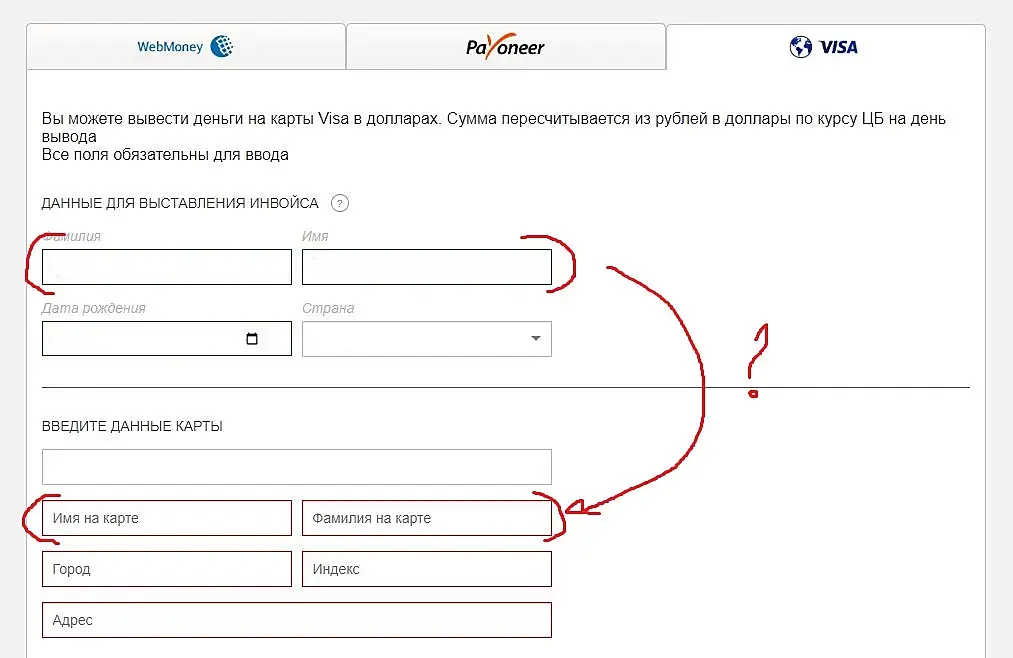 Когда был вывод на карту рф банка, нужно было чтоб данные совпадали