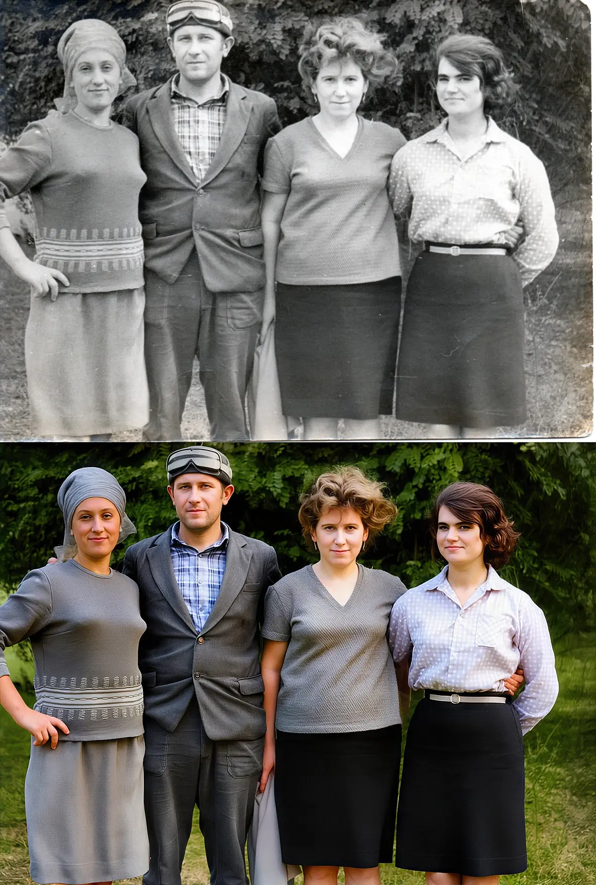 Кто нибудь пробовал новую модель "FLUX.1 Kontext" для Комфи? Поэкспериментировал, загрузил старую фотографию (где то 70-х годов) своих родственников, в промпт буквально вбил 3 слова: "Сделай фото цветным, в HDRI-качестве", и готово: