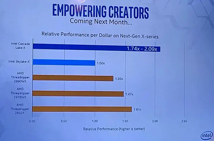 xpp_nd_ruphus, ну так на их слайде есть 2990WX/2970WX/2950X которые по их подсчетам ощутимо менее выгодные чем их будущие процы. А по поводу производительности, да, непонятно еще по какой именно производительности.