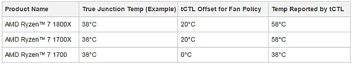амд это уже признали, они завышали показания термодатчиков программно для безопасности, в последней AMD Ryzen Master показывает правильно, сторонние программы пока коряво читают показания