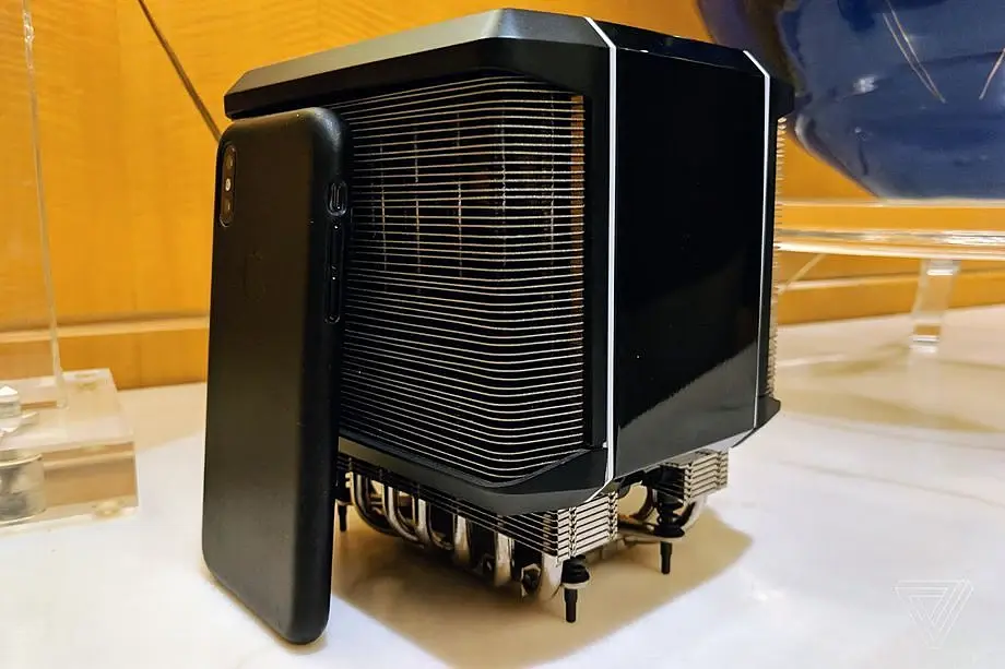 Этот Threadripper может обрабатывать 64 потока за раз, удвоив количество ядер и возможности оригинального Threadripper, хотя он все равно может поместиться в одном гнезде материнской платы. Threadripper 2 получит TDP на 250 Вт и будет совместим с разъемом первого поколения материнской платы X399(но придется обновить Bios). на Computex 2018 AMD рассказала, что второй Threadripper построен с использованием 12-нм техпроцесса и будет доступен для покупки в третьем квартале этого года. То есть на пару месяцев раньше, чем решение от Intel. Таким образом, AMD получит конкурентное преимущество.Кулер, необходимый для обеспечения работы второго поколения Threadripper, примерно на пару сантиметров выше, чем iPhone X. На фото ниже находится фирменный кулер для нового Threadripper. Он изготовлен Cooler Master, и не будет поставляться в коробке с Threadripper, но обязательно потребуется, если вы откажетесь от варианта с водяным охлаждением.