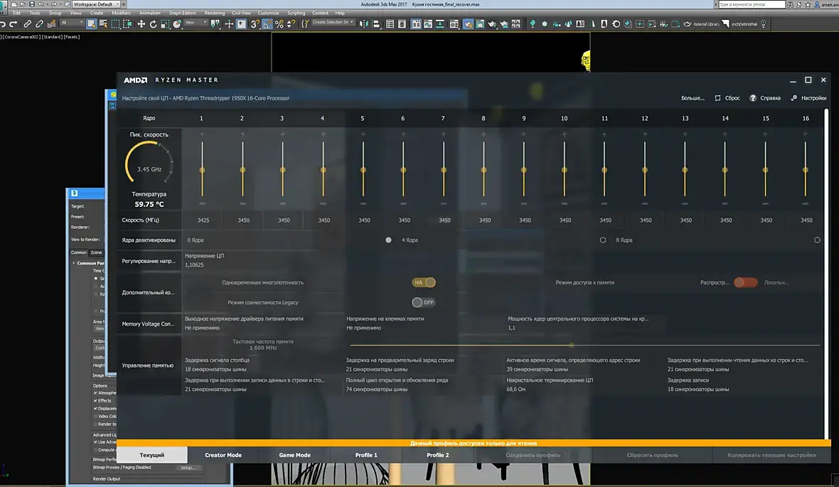 Ребят, ищу помогите, уже ума не приложу что делать. Собрал систему на 1950х, 32 оперативки ддр4, ссд самсунг ево, в предвкушении супер скоростей по сравнении со старым компом начал рендерить старые сцены, и мягко сказать был не удивлен, ибо изменения были практически не значительным. Скачал бенчмарк короны и был в шоке, результат был в нем 3 минуты, с 2.7-3 миллионом rays. Втф, в чем может быть проблема?