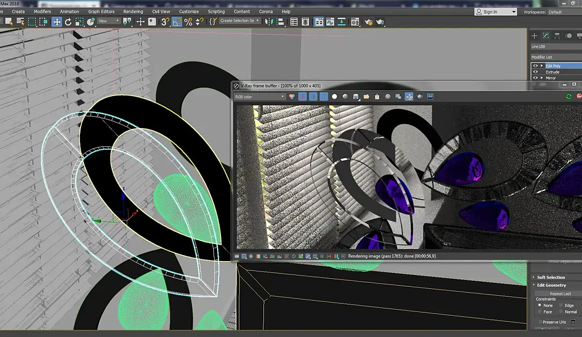 Коллеги, скажите пожалуйста, отчего на модели зеркала вылезают такие артефакты? Геометрия зеркала - подложка, тонкий слой отражающего материала, и сверху слой стекла. Откуда вообще лезут эти чёрные полоски, как их победить?