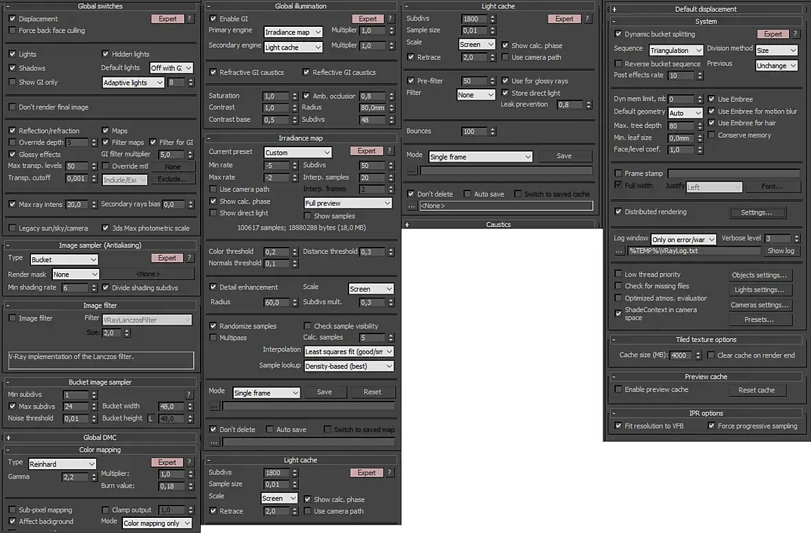 V-ray 3.60.03 (проблема была и на прошлых версиях). Настроен по дефолту с небольшими отклонениями.