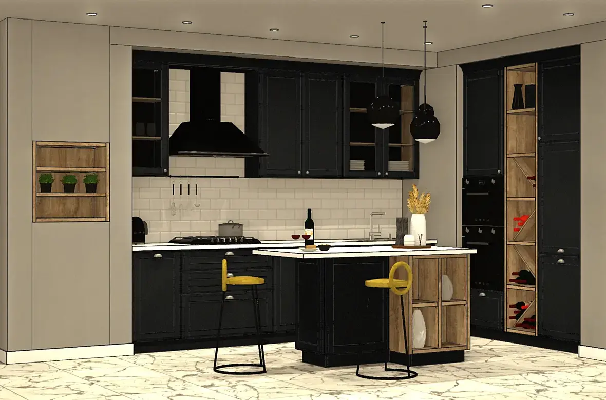 В совокупности. И сам проект и качество виза. Адекватна ли цена в 4к рублей за работу в 3-4 подобных картинки. Саму компоновку гарнитура строю из готовых модулей. Так же строю с нуля интерьер. Настраиваю свет, насколько возможно в проге. Добавляю декоры и прочее (да, скачанное с 3ддд))). В целом пока на всю работу вместе с визом уходит 1-1,5 дней