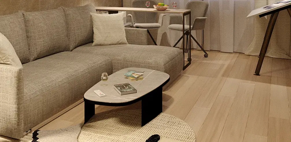 Белесые полоски проявляются местами на полу. Хорошо их видно под журнальным столиком. Как можно эту проблему устранить? Очень надеюсь на ваш профессионализм и опыт. Заранее благодарю за решения этой проблемы.