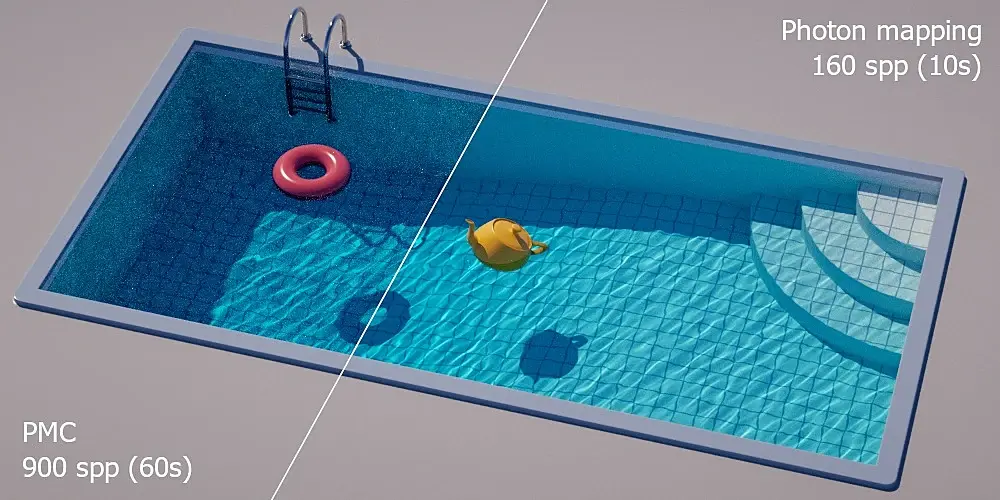 This kernel is much more than just PPM. It uses a novel combination of GPU photon mapping and path guiding to get us the best of both worlds: full dynamic interactivity for scene, materials and light transport changes in the IPR even while caustics / irradiance keep rendering thousands of times faster (vs. path tracing or PMC).