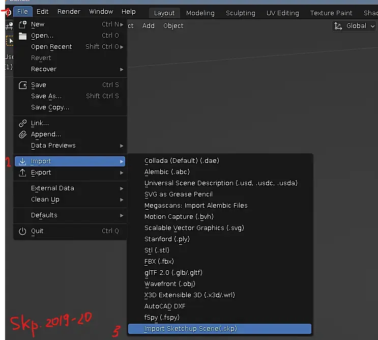 Версия скечапа не важна. Важно в КАКОЙ ВЕРСИИ ВЫ СОХРАНЯЕТЕ skp. файл. (2021 импортер не подхватывает)