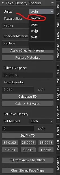 проверяю сначала габаритный размер модели (тут все совпало) далее проверяю тексель и он не совподает на px/unit и px/in