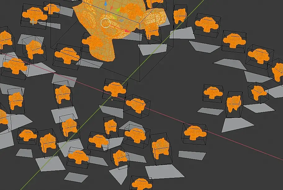 "Но можно выкрутиться. Сделать меш, который будет иметь ячейки вороного так, чтобы в центрах были вертексы и по вертексам рассадить"