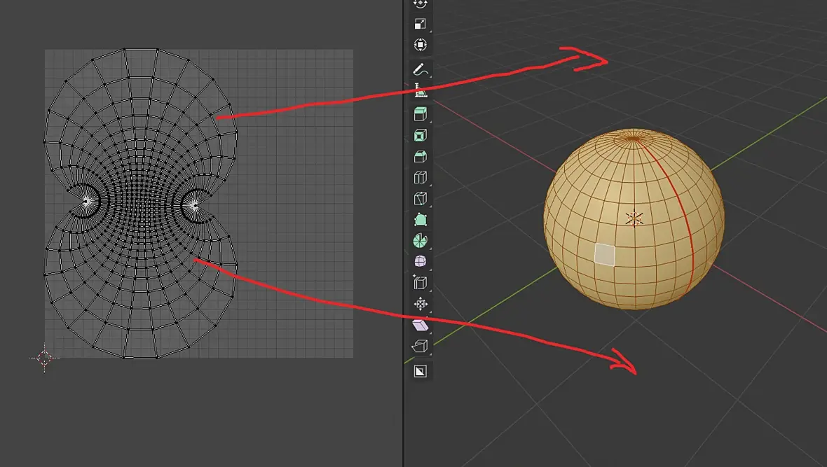 | Сферу развернуть сегментами? Если каждой "вертикали" назначить edge-mark seam и просто анфврапнуть то будет так. Останется немного скорректировать