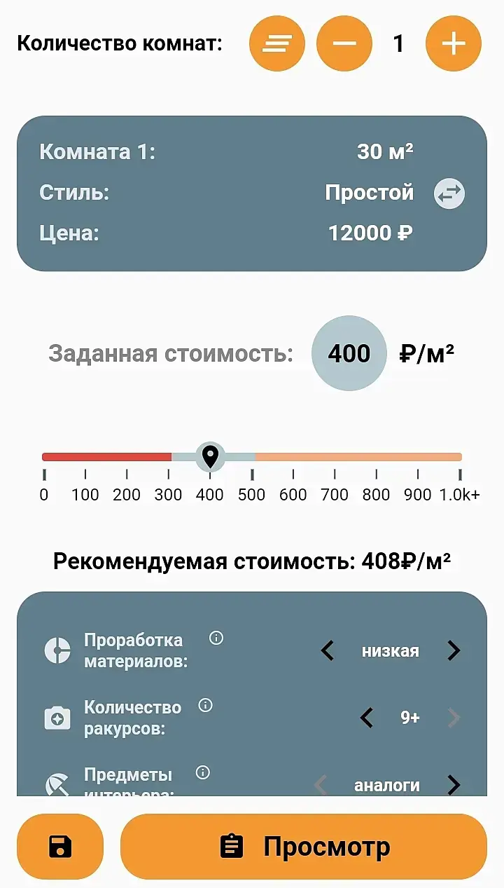 На данном этапе это параметр "предметы интерьера" с изменяемым значением "аналоги" и "точные копии". При точных копиях идёт процентное удорожание, но это временное решение. В следующих версиях постараемся сделать эту настройку более гибкой, учитывающей сложность моделей и покупку ПРО.