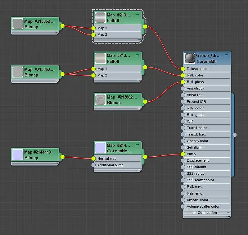 Неправильно настроены карты фаллоф. Если пользуете перпендикуляр-парралель, то желательно настраивать кривую. Если тип - френель, то в этом случае без оверрайда иора материала. И так же может потребоваться настройка кривой. Да и в дифузе использовать фаллоф требуется в редких случаях. + Один слот всегда должен быть темнее по гамме. Если одна текстура, то можете пустить ее во второй слот через карту оутпут или карту гамма-коррекции, чтобы сделать темнее.