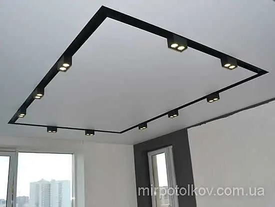 Был у меня такой опыт когда то , сразу планировалось установка трековой скрытой системы, выбор пал на продукцию "Центрсвет" но так как светотехники много , насчитали почти под миллион рублей, и как всегда бывает, изначально строится на "широкую ногу" но потом бюджет ужимается , и тоже думали как это обыграть, пробовали наносить такие полосы , конечно совсем как то не очень , решили все таки сделать углубление (потолок гипсокартон) и внутри углублений покрасить черной краской, встроили в углубление дешманские китайские светильники , получилось вроде даже ничего. Правда потолочник 256 раз вспотел , пока сделал эти углубления, зашпаклевал и покрасил)